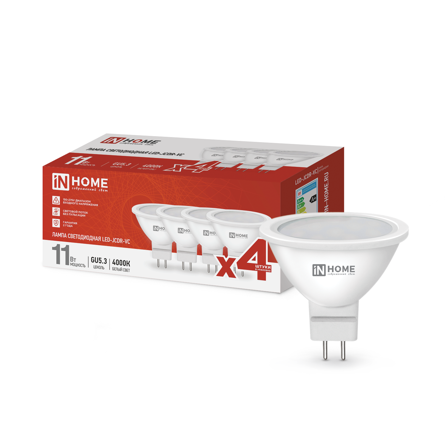 Лампа светодиодная LED-JCDR-VC 4PACK 11Вт 230В GU5.3 4000К 990Лм (4шт./упак) IN HOME