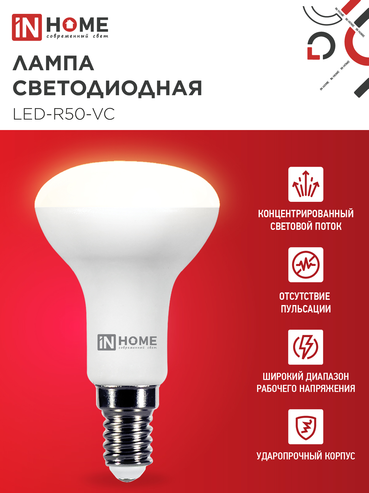 Лампа светодиодная LED-R50-VC 6Вт 230В Е14 3000К 530Лм IN HOME