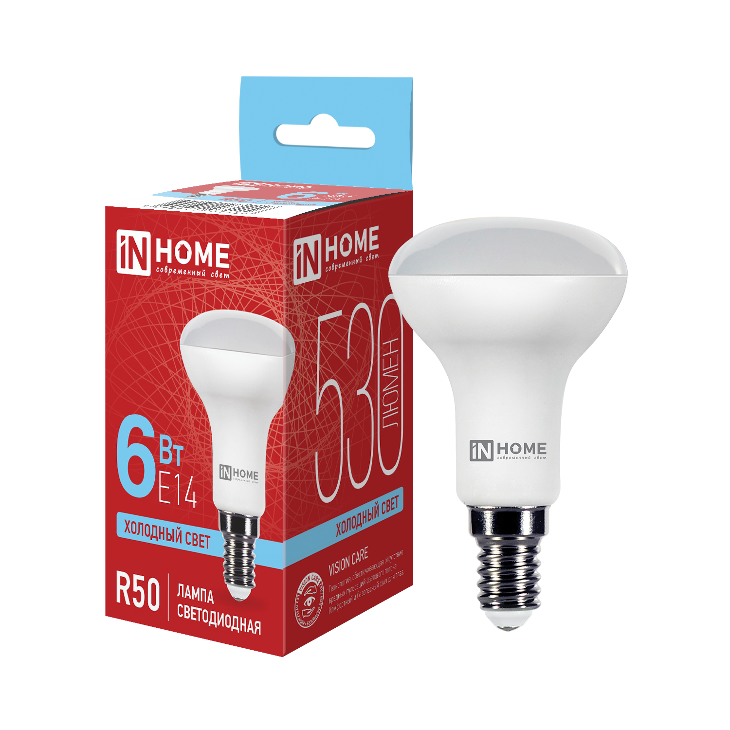 Лампа светодиодная LED-R50-VC 6Вт 230В Е14 6500К 530Лм IN HOME