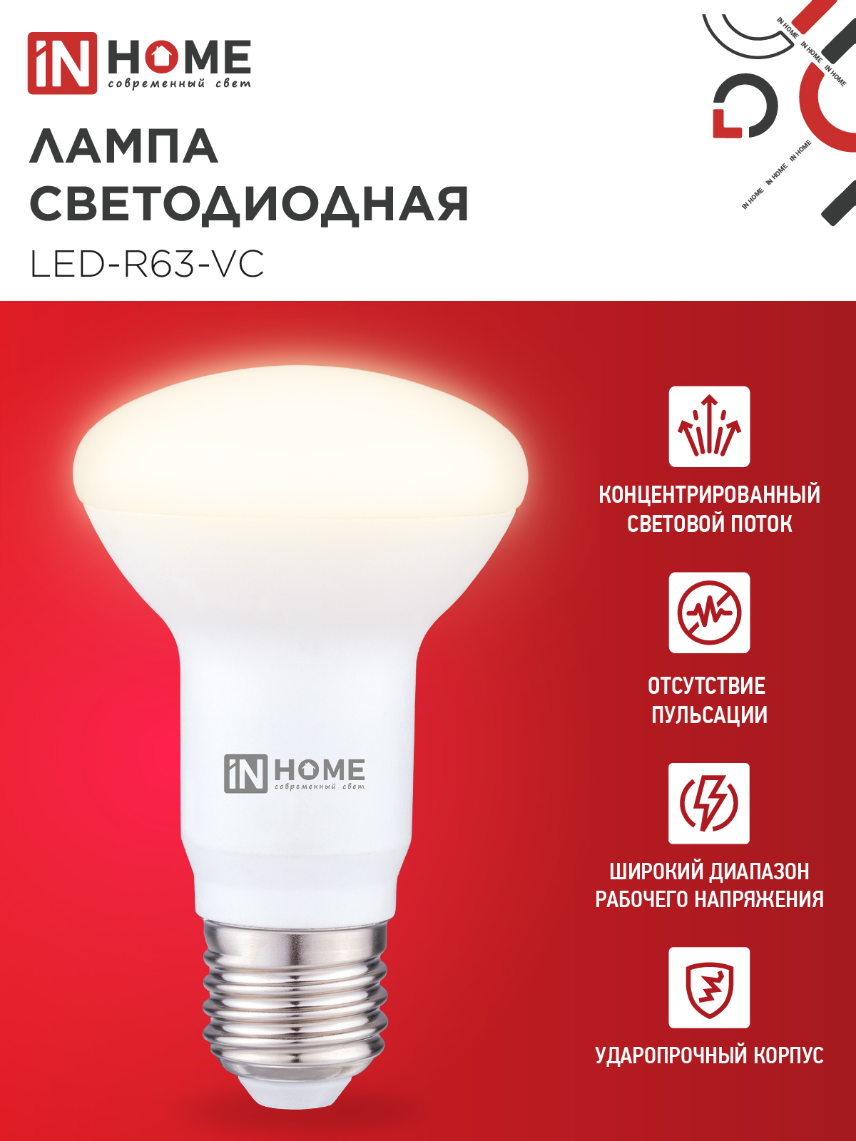 Лампа светодиодная LED-R63-VC 9Вт 230В Е27 3000К 810Лм IN HOME
