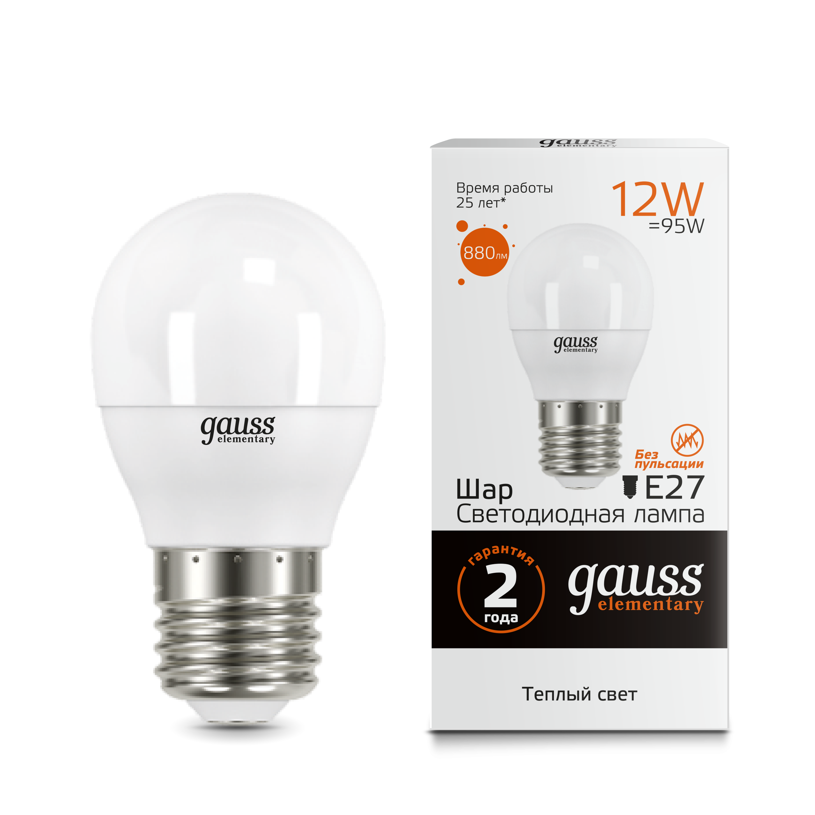 Лампа светодиодная LED-ШАР 12Вт E27 3000K 880Лм Elementary GAUSS
