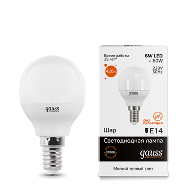 Лампа светодиодная LED-ШАР 6Вт E14 3000K 420Лм Elementary GAUSS