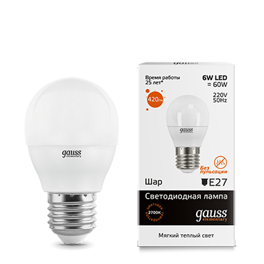 Лампа светодиодная LED-ШАР 6Вт E27 3000K 420Лм Elementary GAUSS