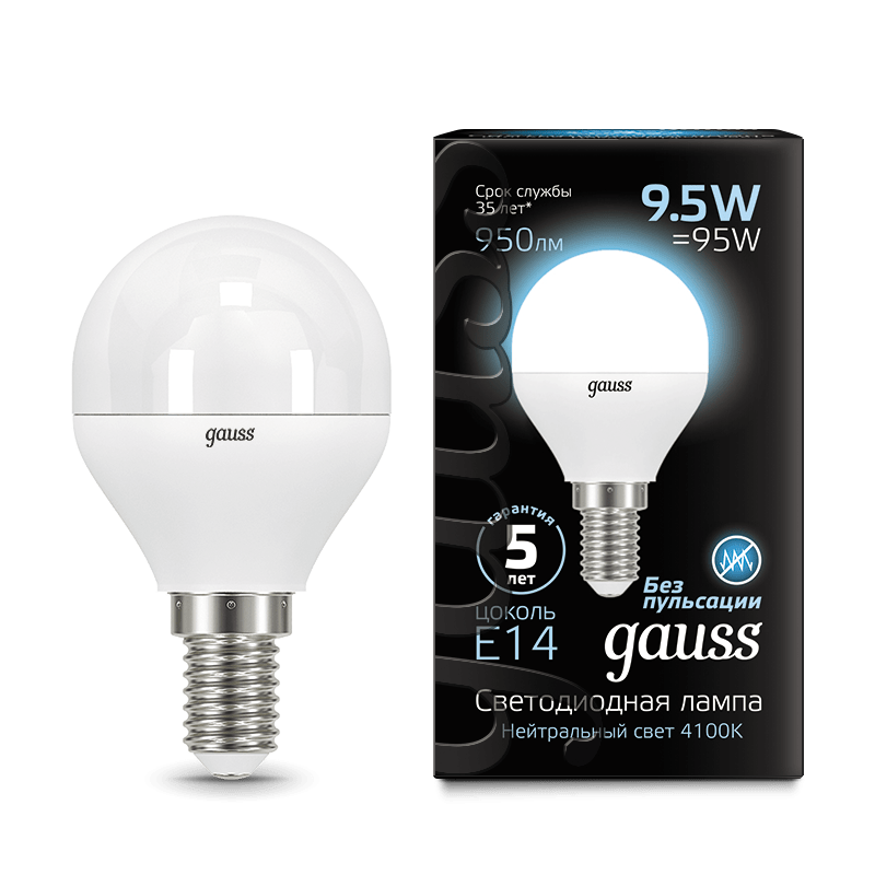 Лампа светодиодная LED-ШАР 9.5Вт E14 4100K 950Лм Black GAUSS