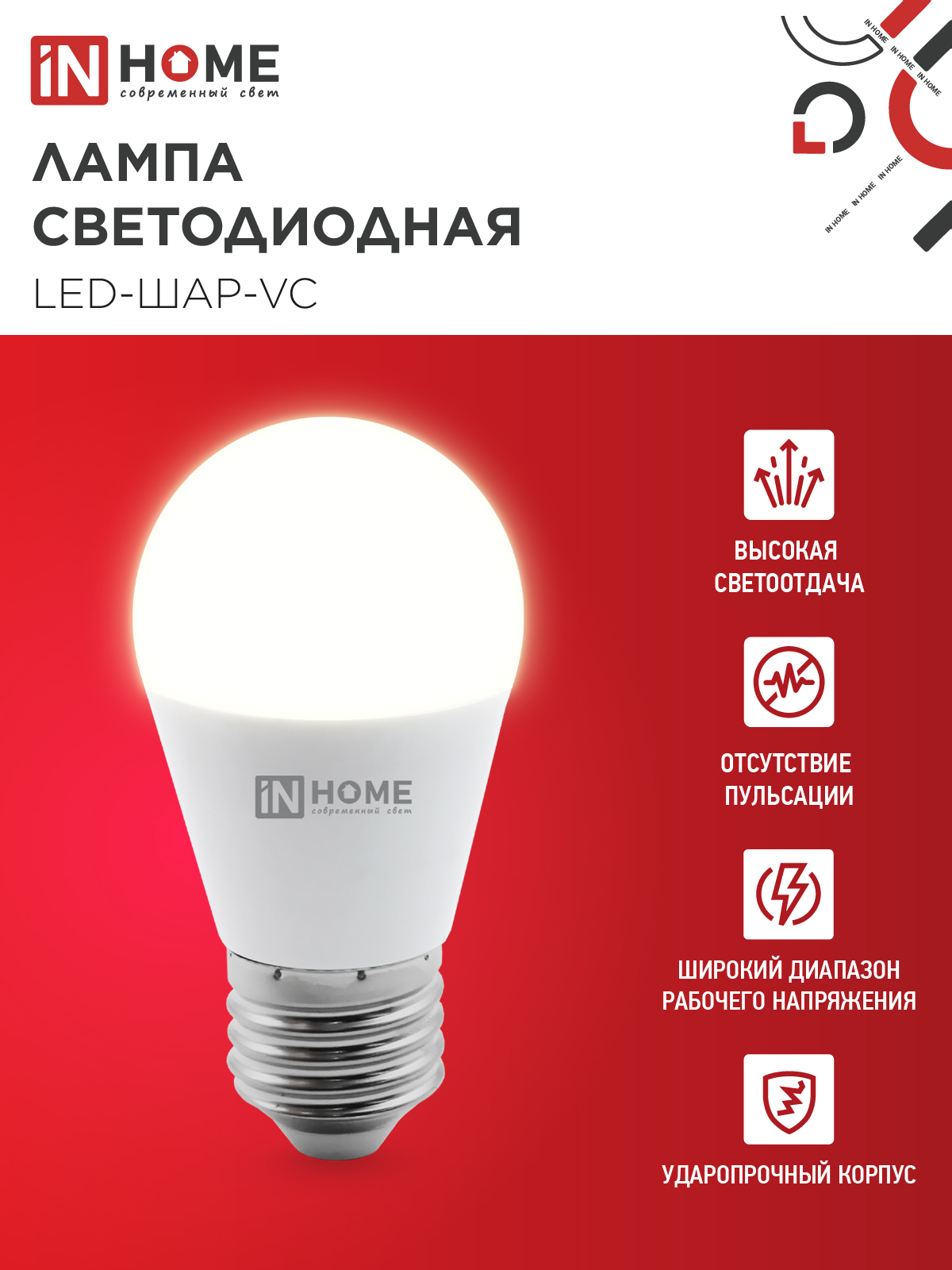 Лампа светодиодная LED-ШАР-VC 14Вт 230В E27 3000K 1330Лм IN HOME