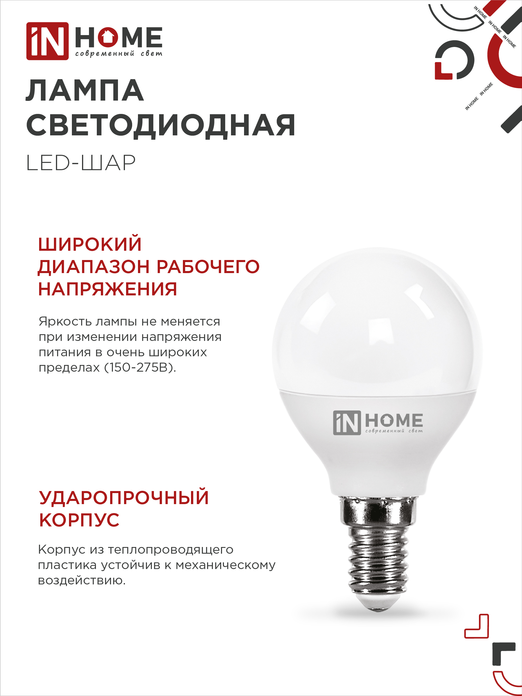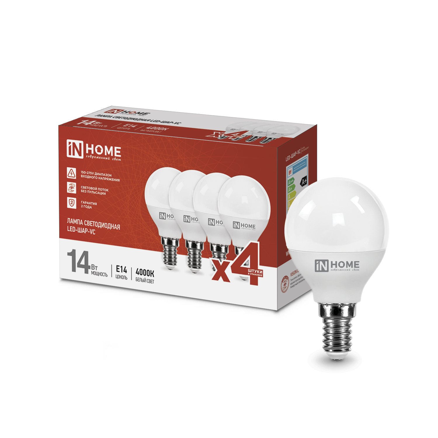 Лампа светодиодная LED-ШАР-VC 4PACK 14Вт 230В Е14 4000К 1330Лм (4шт./упак) IN HOME