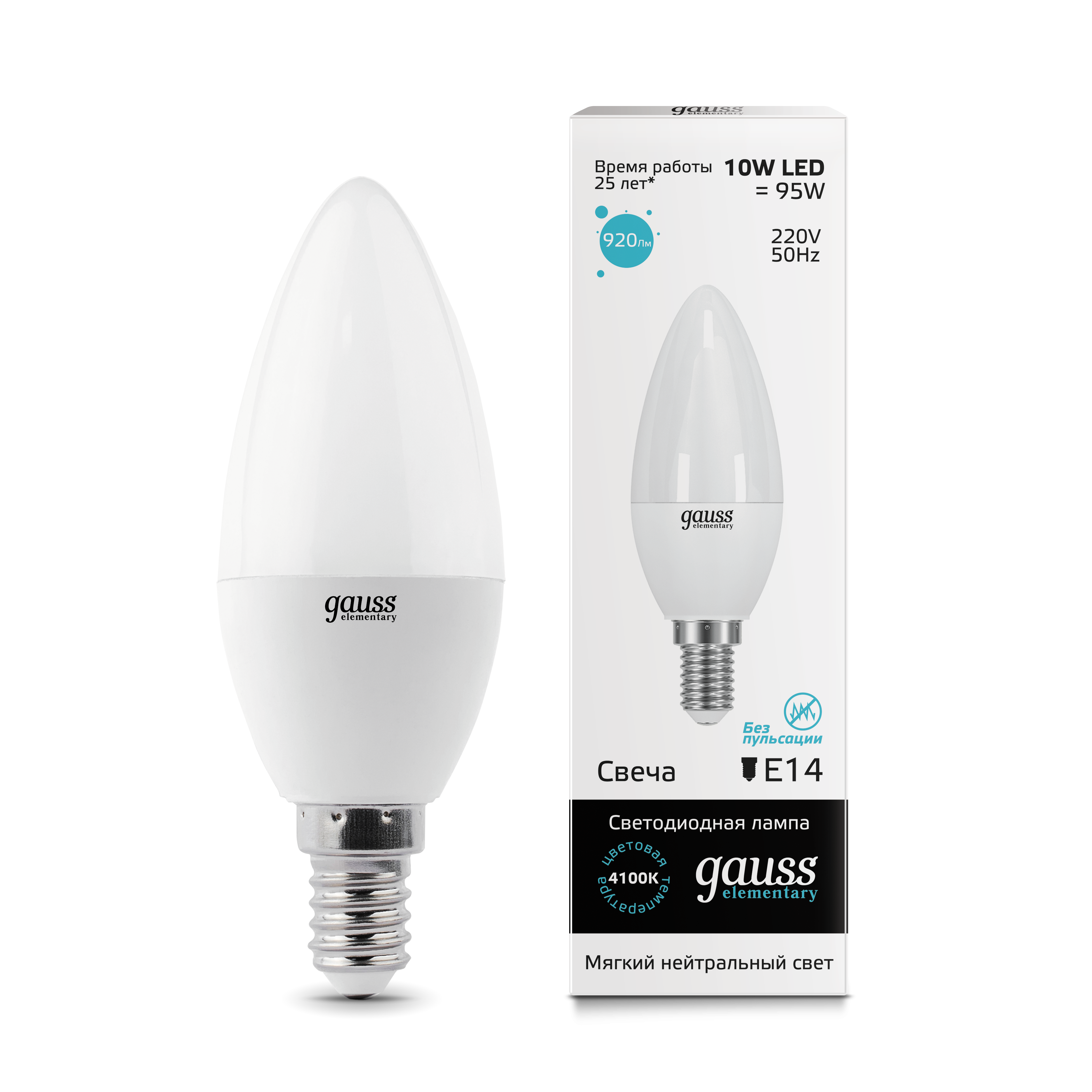 Лампа светодиодная LED-СВЕЧА 10Вт E14 4100K 920Лм Elementary GAUSS