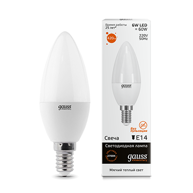 Лампа светодиодная LED-СВЕЧА 6Вт E14 3000K 420Лм Elementary GAUSS
