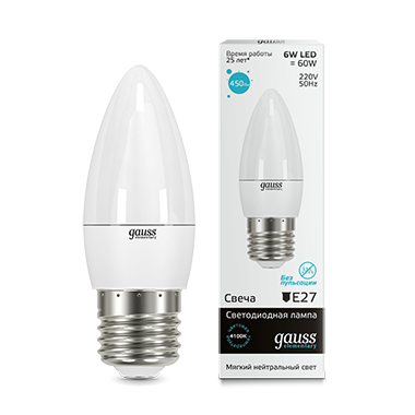 Лампа светодиодная LED-СВЕЧА 6Вт E27 4100K 450Лм Elementary GAUSS