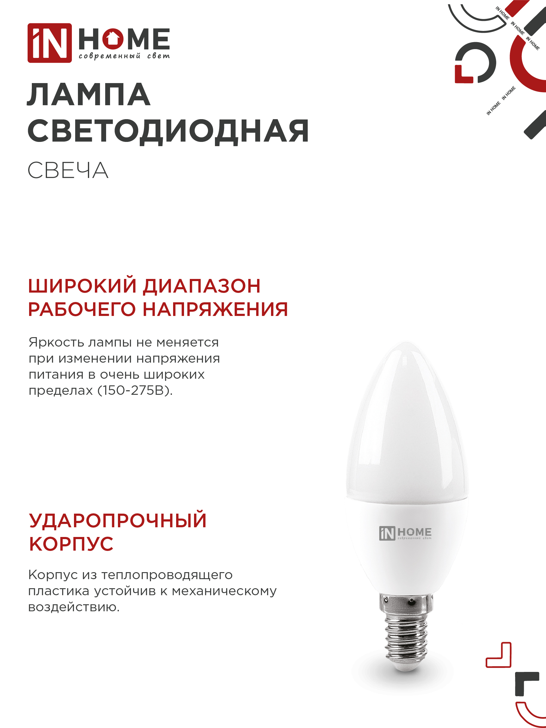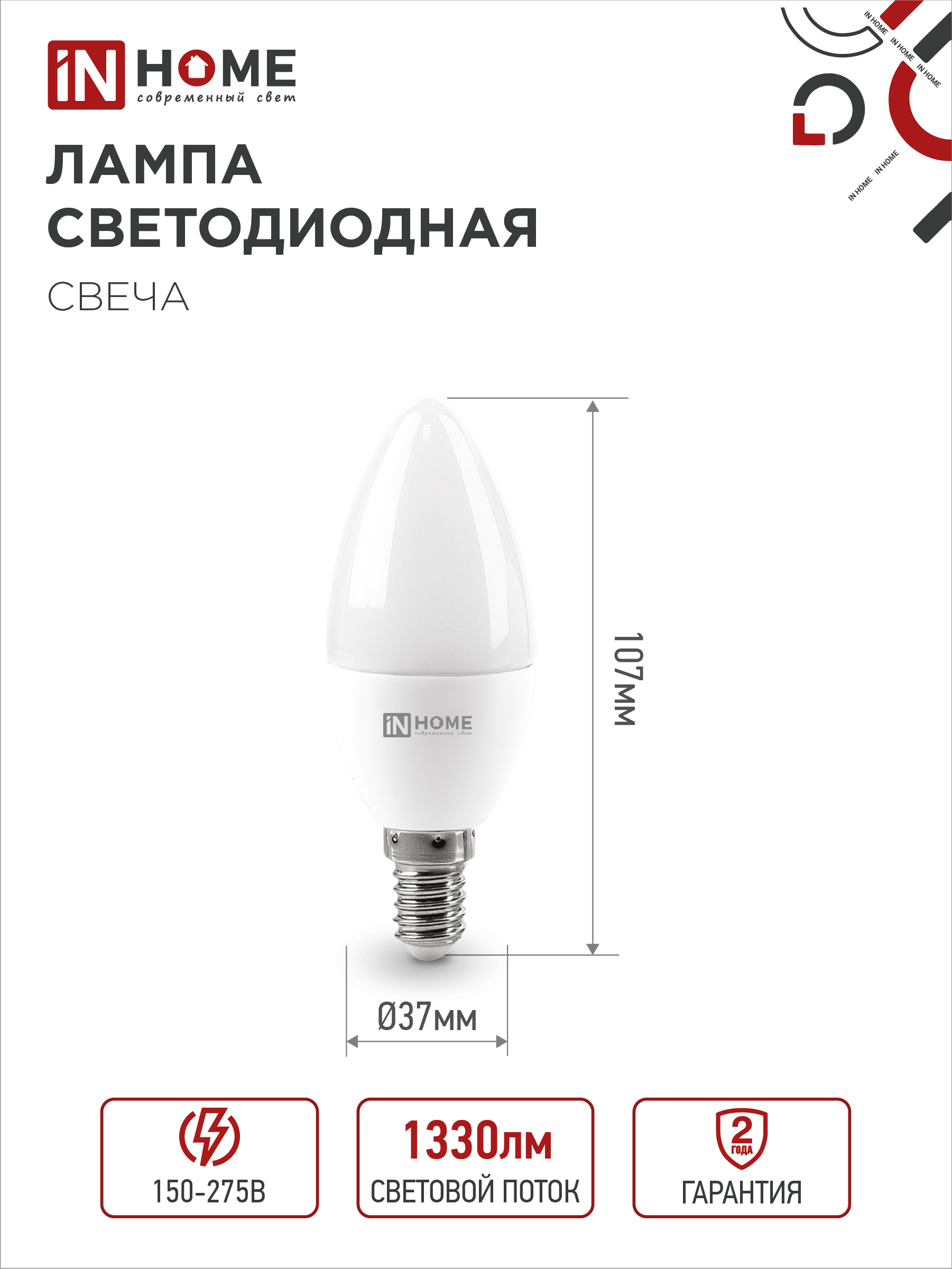 Лампа светодиодная LED-СВЕЧА-VC 14Вт 230В E14 4000K 1330Лм IN HOME