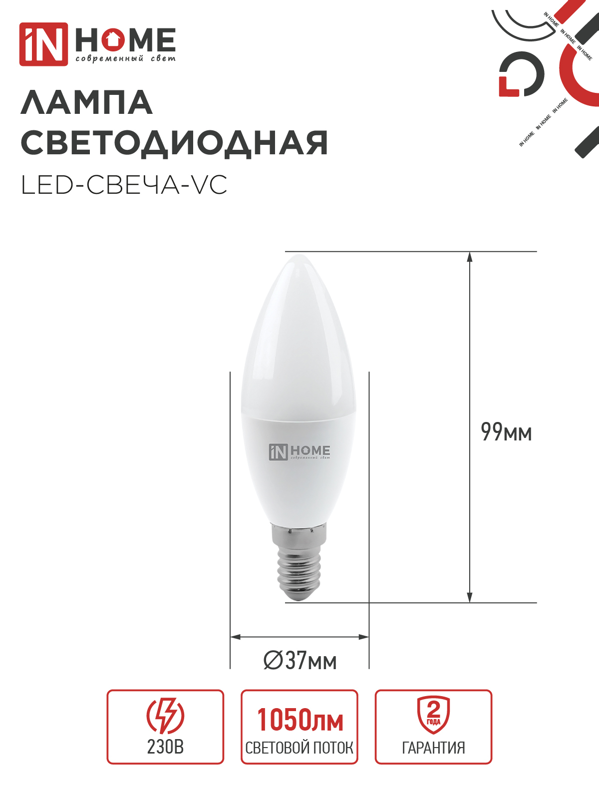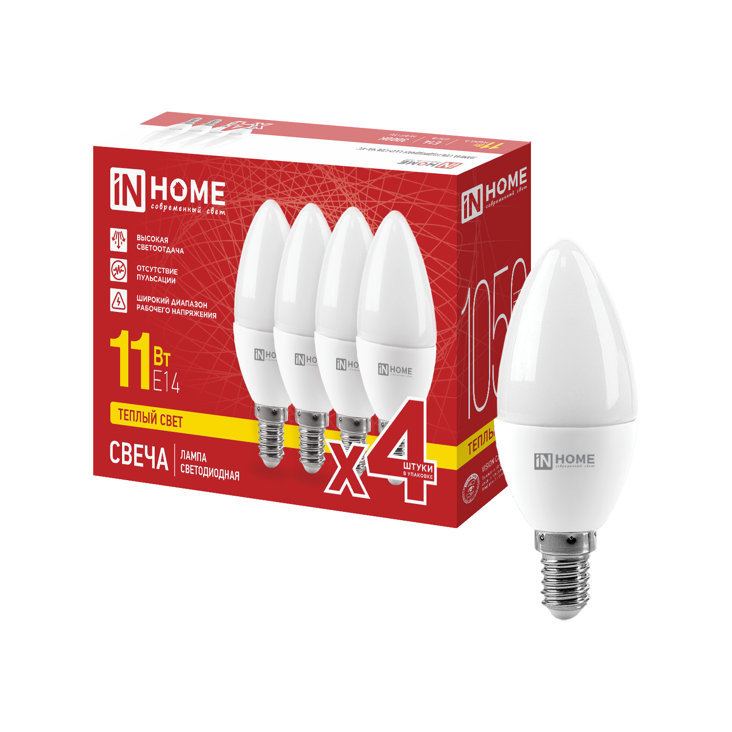 Лампа светодиодная LED-СВЕЧА-VC 4PACK 11Вт 230В Е14 3000К 1050Лм (4шт./упак) IN HOME