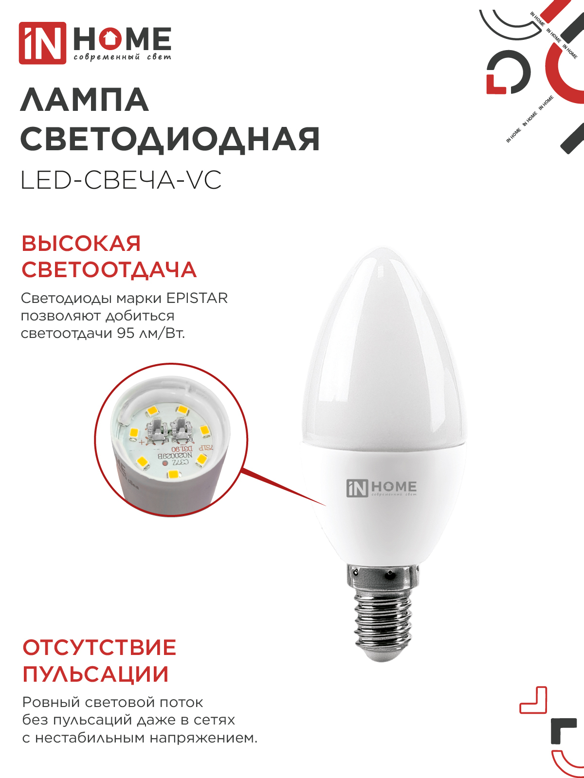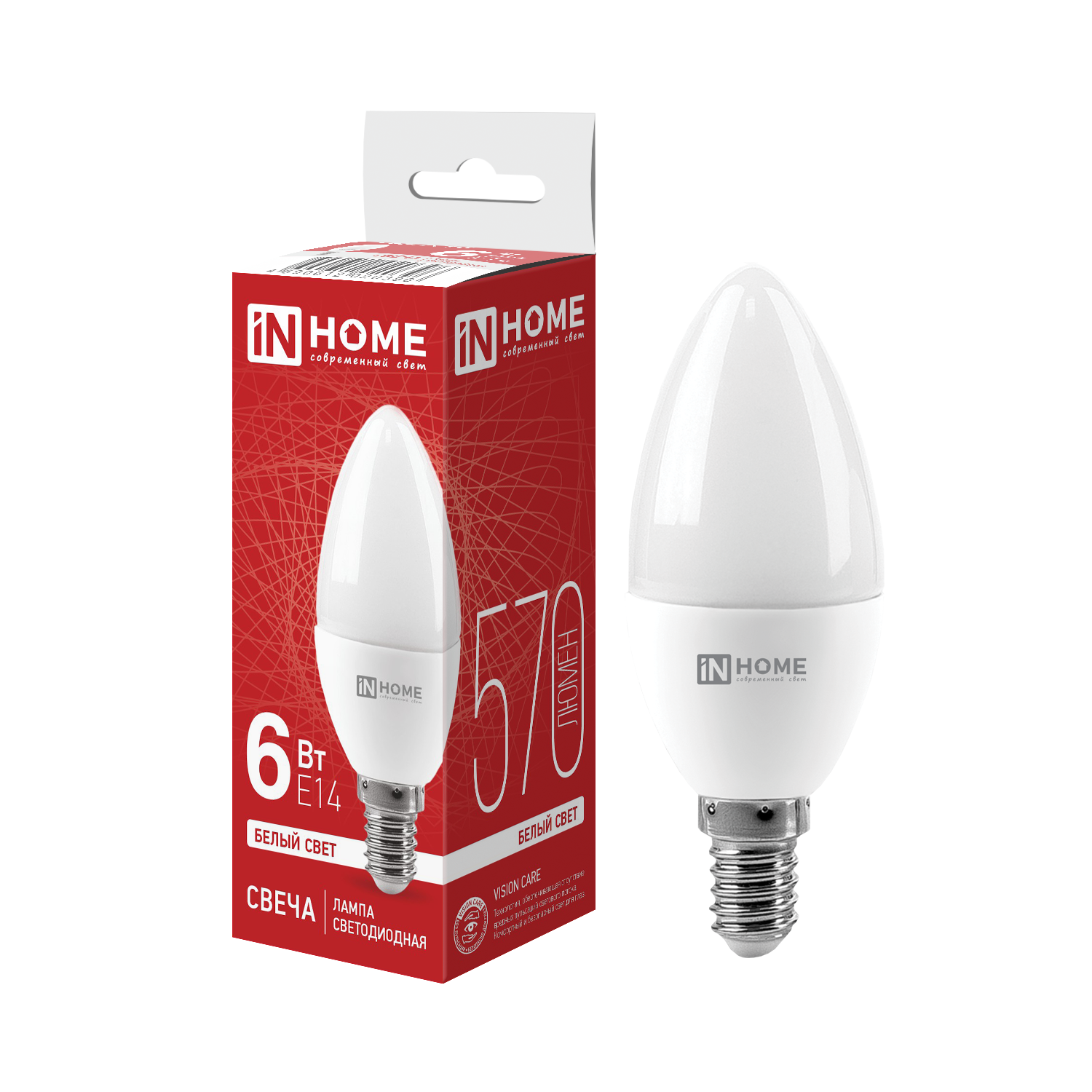 Лампа светодиодная LED-СВЕЧА-VC 6Вт 230В Е14 4000К 570Лм IN HOME