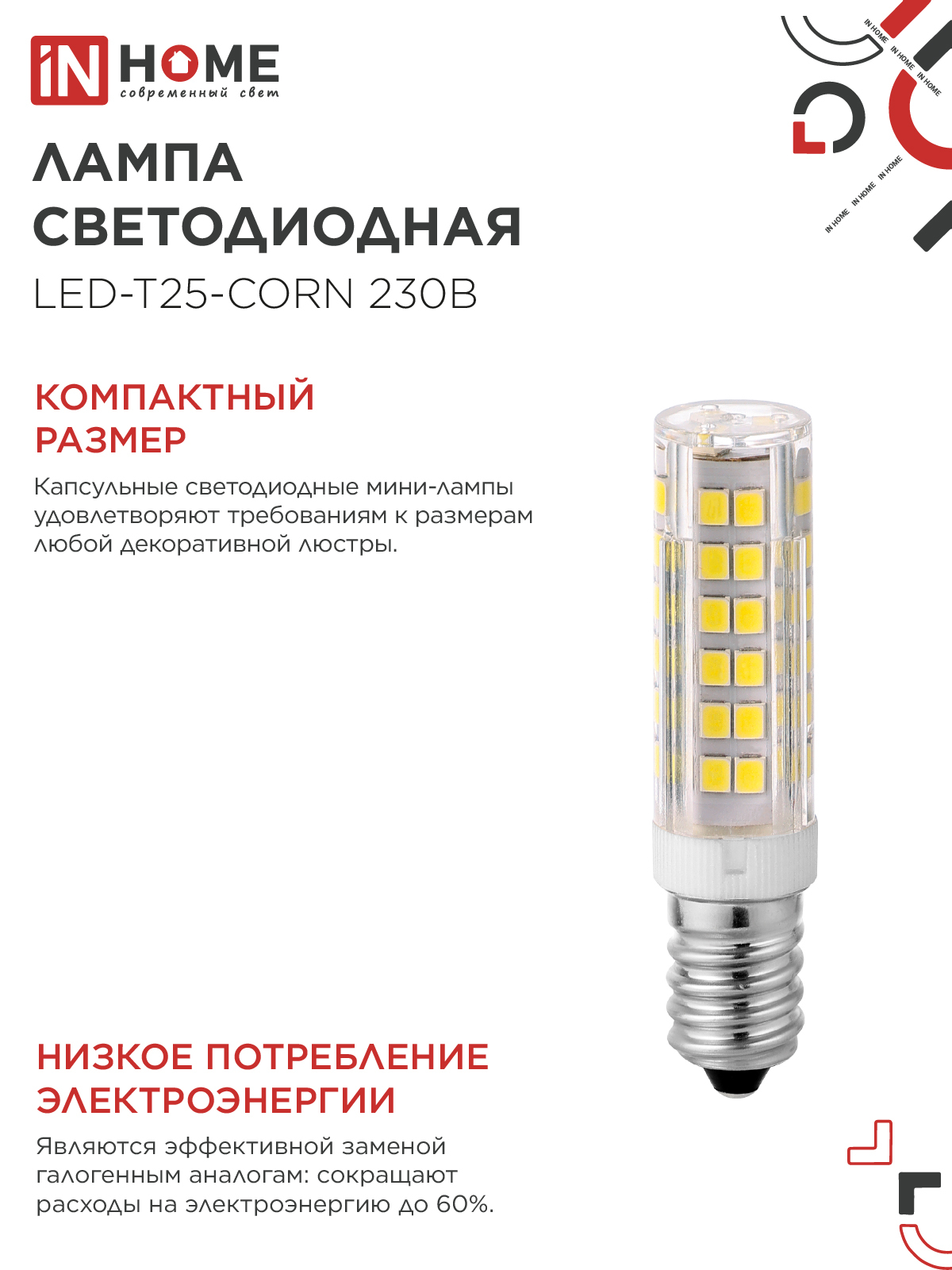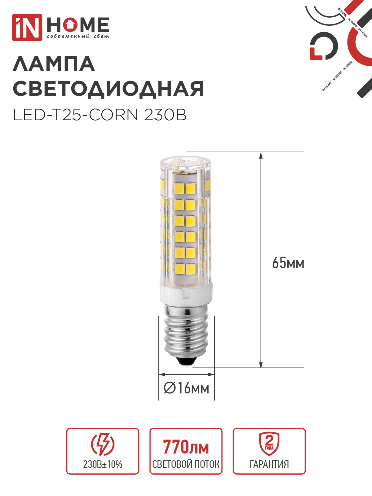 Лампа светодиодная LED-T25-CORN 8Вт 230В E14 4000К 770Лм IN HOME