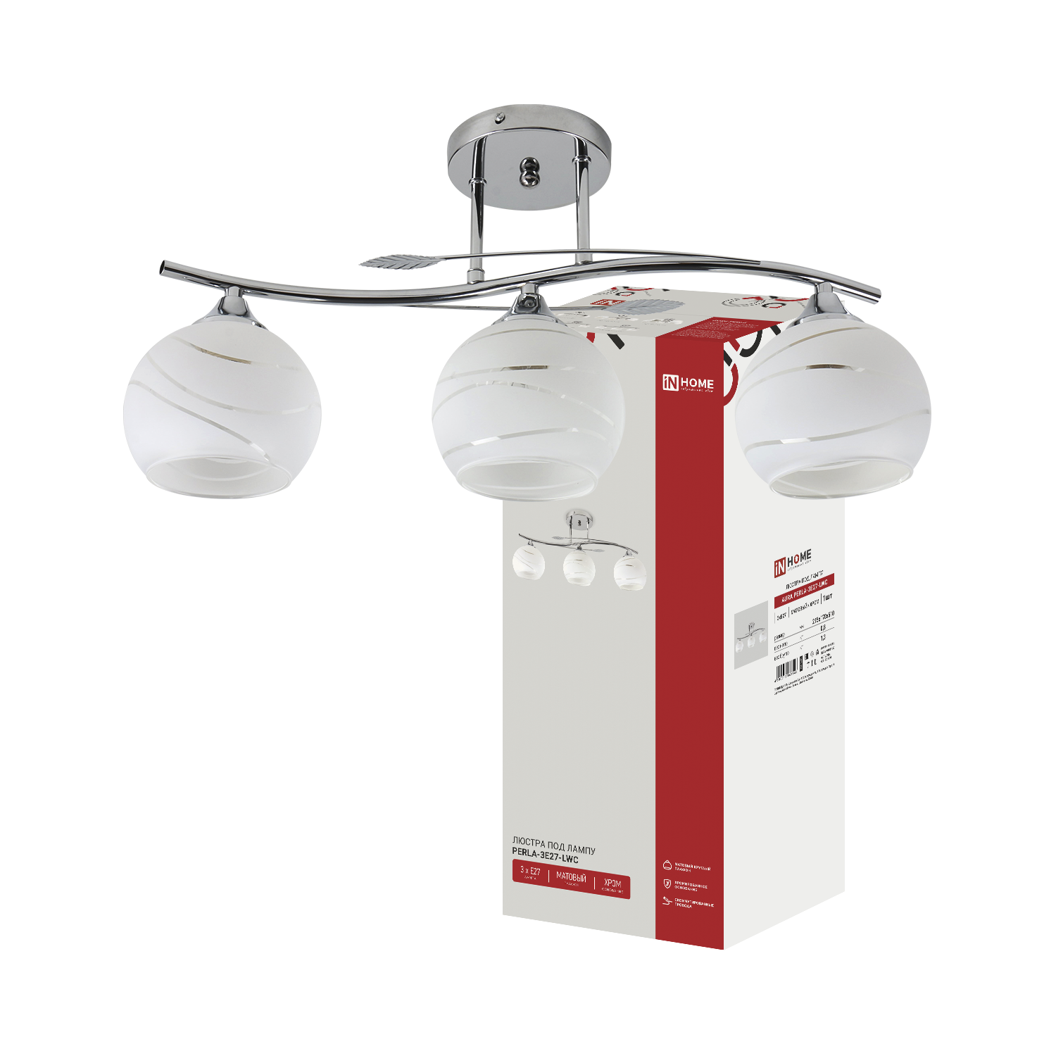 Люстра линейная под лампу AURA PERLA-3E27-LWC 3хЕ27 матовый плафон, хром IN HOME