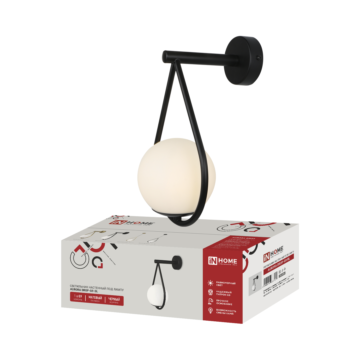 Светильник настенный под лампу AURORA DROP-G9-BL 1хG9 матовый плафон, черный корпус IN HOME