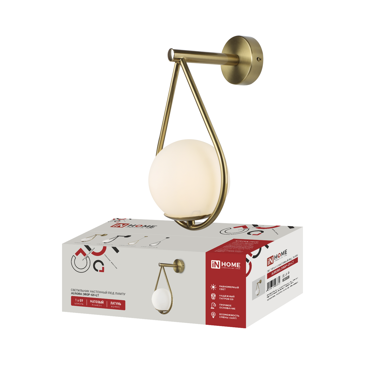 Светильник настенный под лампу AURORA DROP-G9-LT 1хG9 матовый плафон, латунный корпус IN HOME