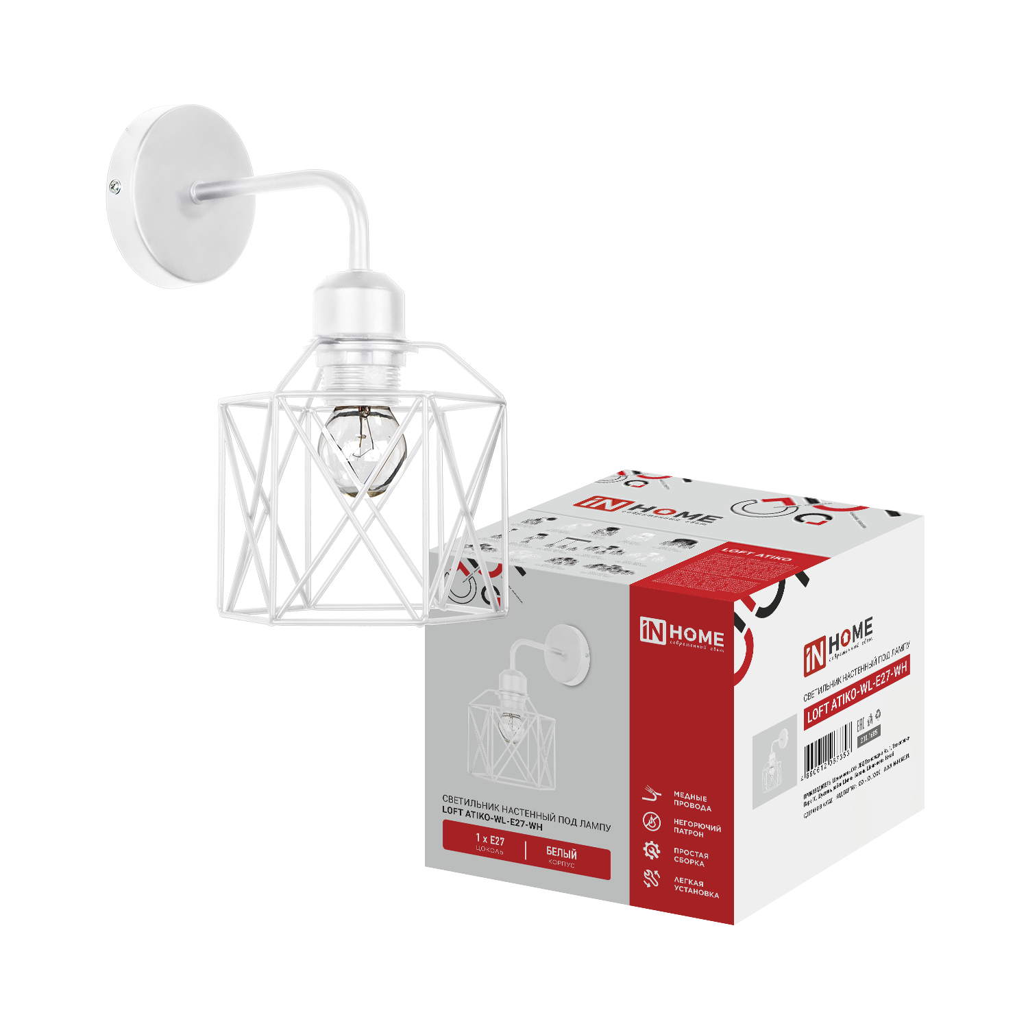 Светильник настенный под лампу LOFT ATIKO-WL-E27-WH Е27 белый IN HOME