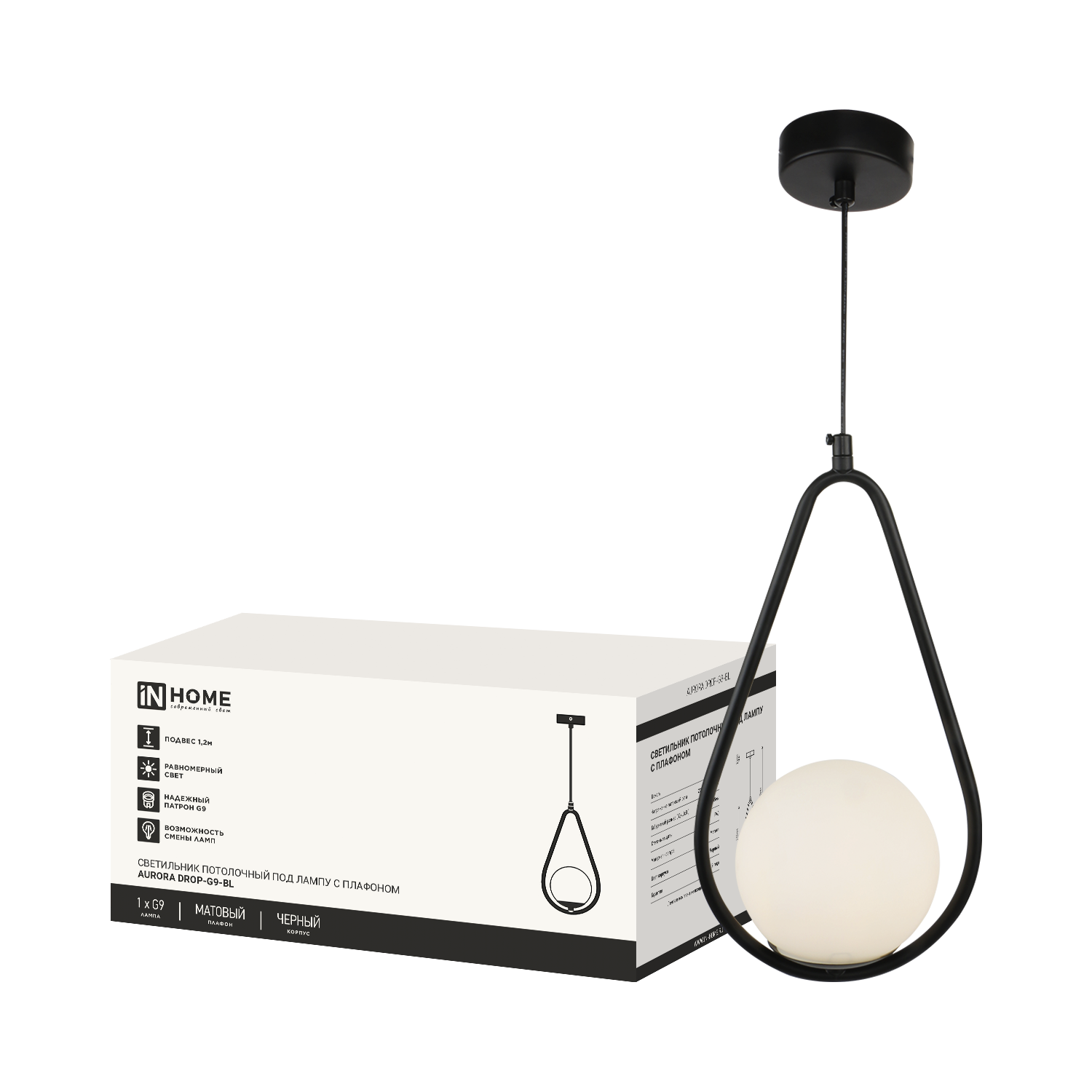 Светильник подвесной под лампу AURORA DROP-G9-BL 1хG9 матовый плафон, черный корпус IN HOME