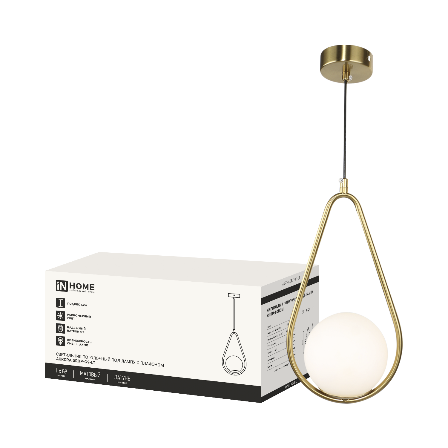 Светильник подвесной под лампу AURORA DROP-G9-LT 1хG9 матовый плафон, латунный корпус IN HOME