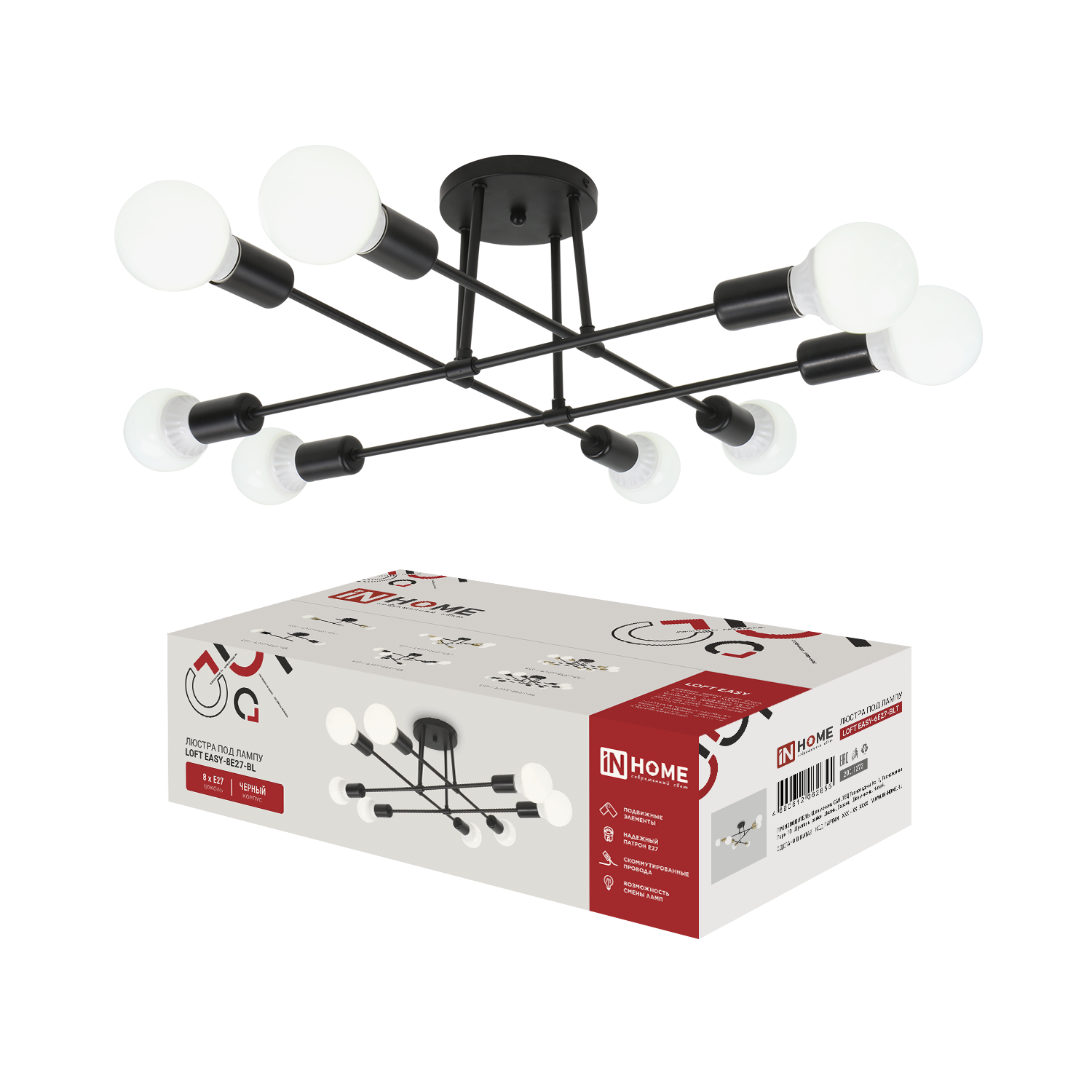 Светильник потолочный под лампу LOFT EASY-8E27-BL 8хЕ27 черный IN HOME