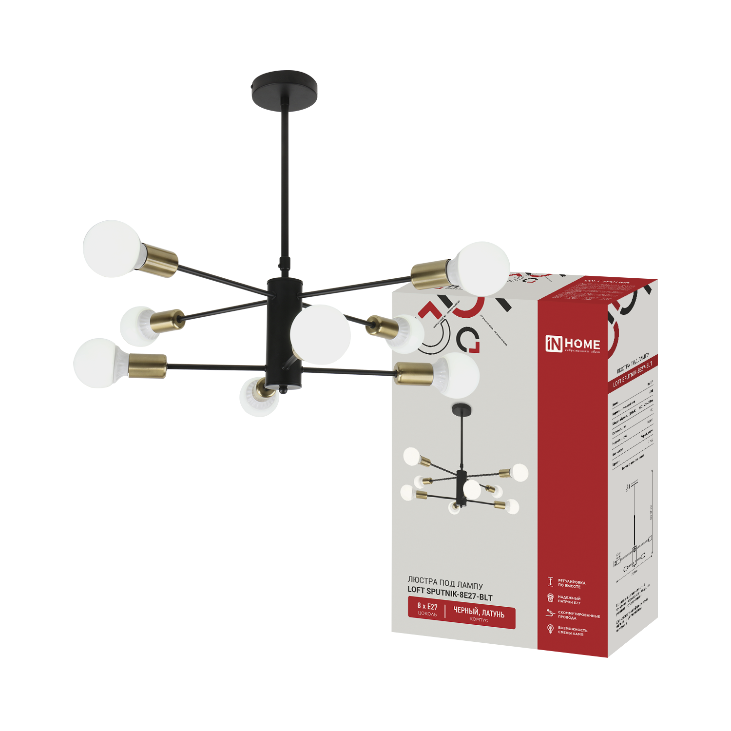Люстра под лампу LOFT SPUTNIK-8E27-BLT 8хЕ27 черный, латунь IN HOME