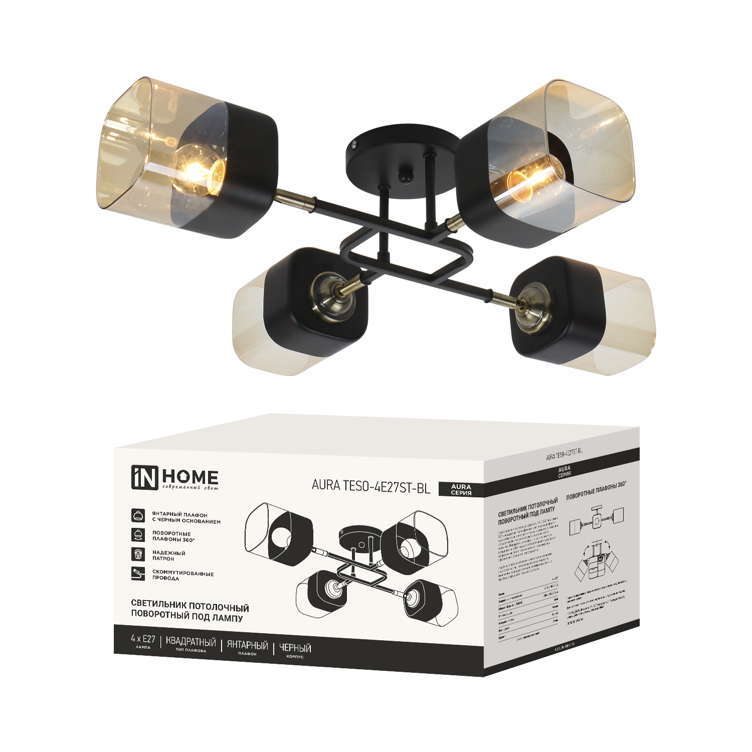 Светильник потолочный поворотный AURA TESO-4E27ST-BL 4хЕ27 янтарные плафоны, черный корпус IN HOME