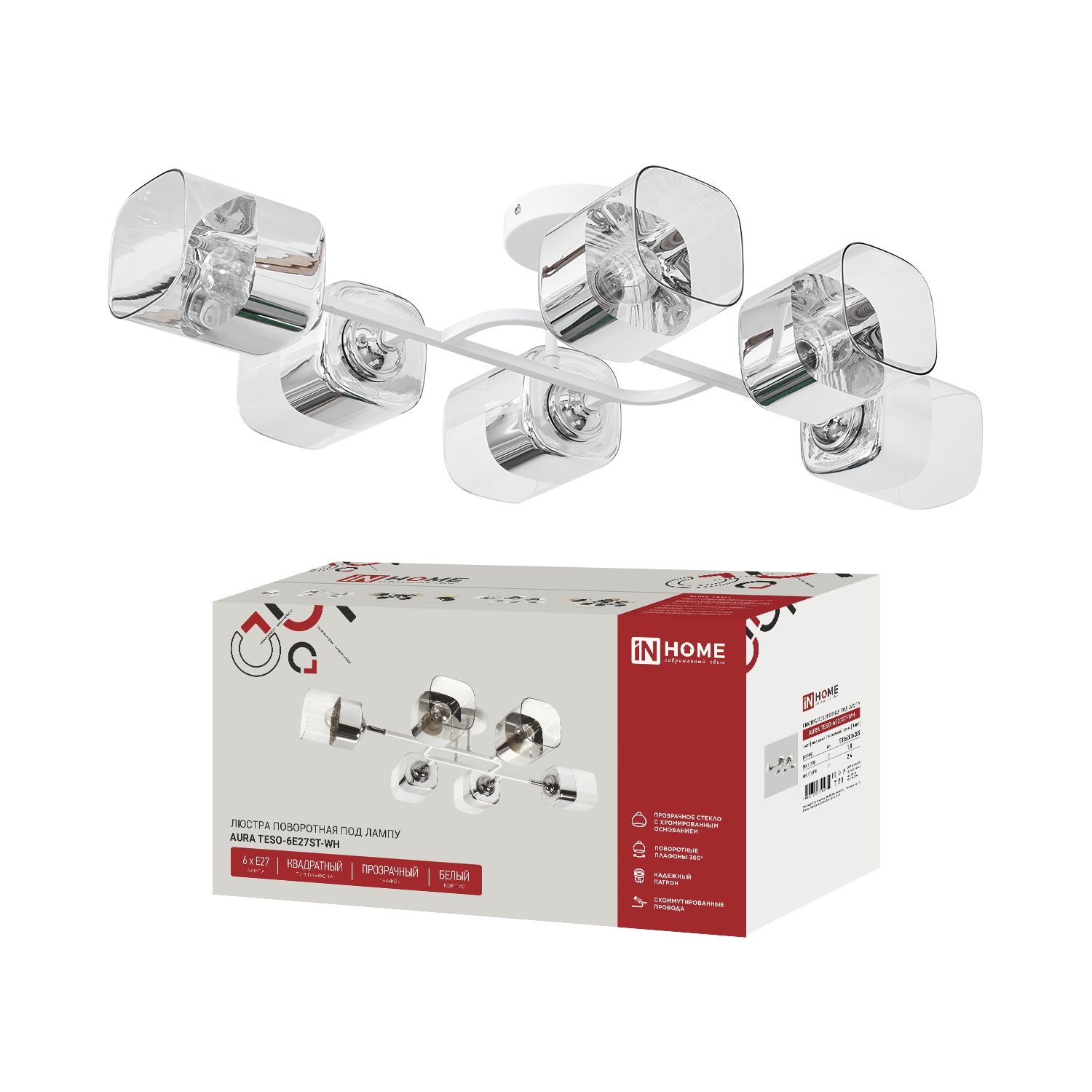 Светильник потолочный поворотный AURA TESO-6E27ST-WH 6хЕ27 прозрачные плафоны, белый корпус IN HOME