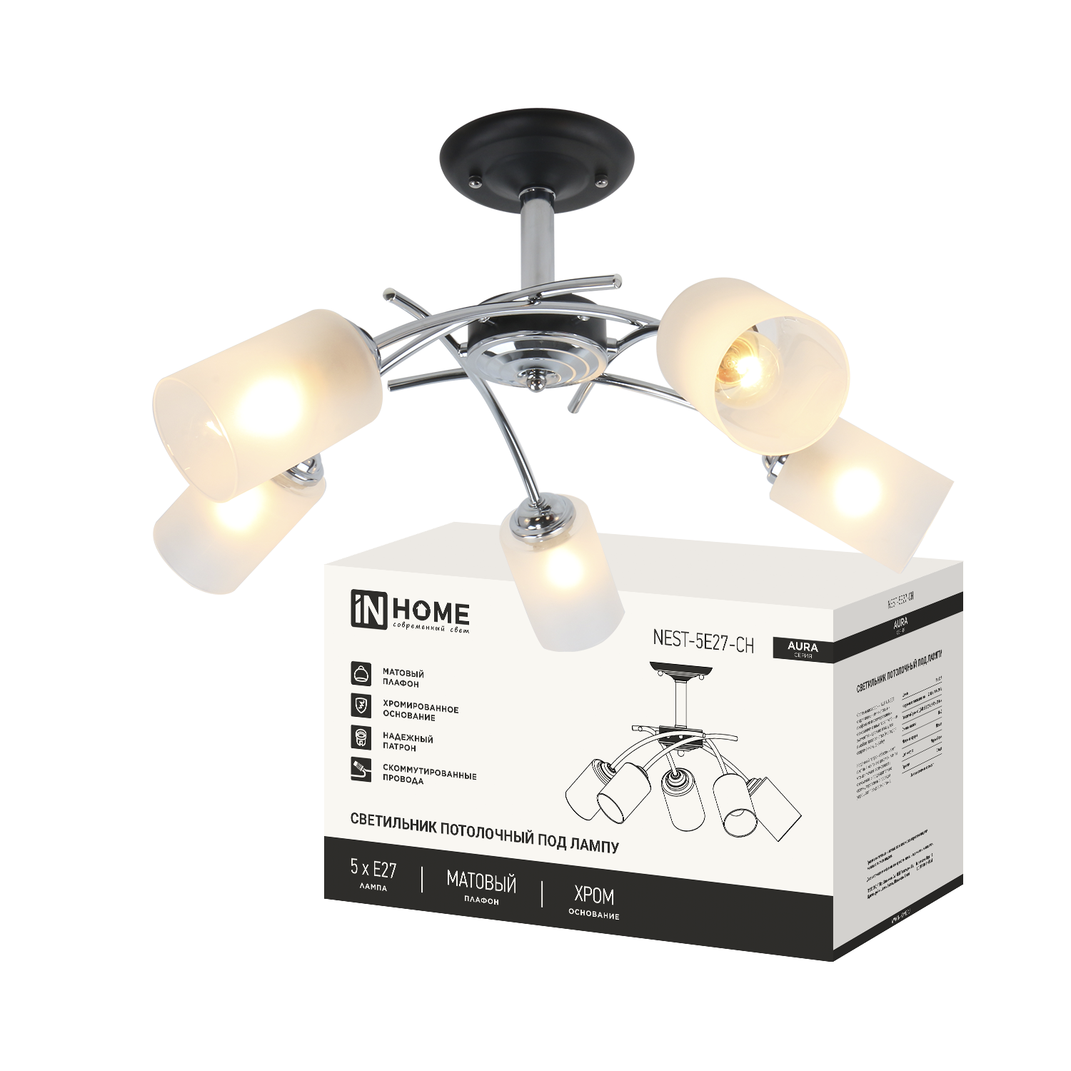 Люстра под лампу AURA NEST-5E27-CH 5хЕ27 матовый плафон хромированный корпус IN HOME