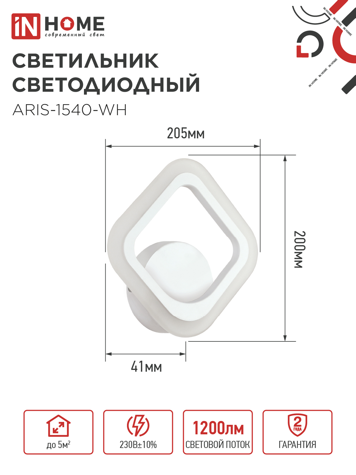 Светильник светодиодный ELEGANT ARIS-1540-WH 15Вт 230В 4000К 1200Лм белый IN HOME