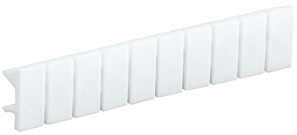 Устанавливаются в соответствующие пазы клеммы. Выполнены в виде пластин с десятью маркировочными площадками. Каждая площадка легко отсоединяется друг от друга.
