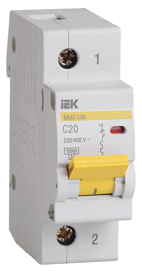 Автоматический выключатель ВА47-100 1Р 20А 10кА характеристика C IEK