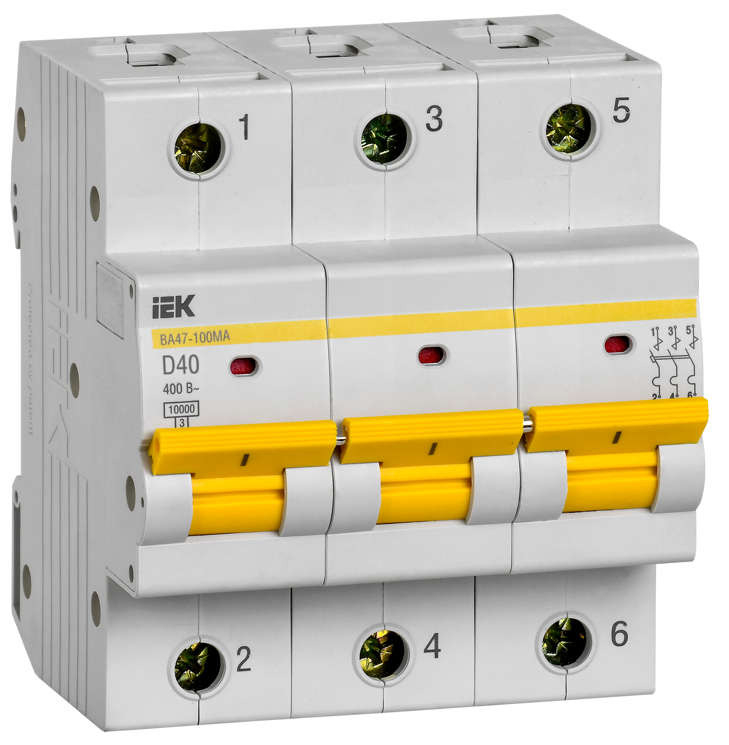 Автоматический выключатель ВА47-100МА без теплового расцепителя 3P 40А 10кА х-ка D IEK