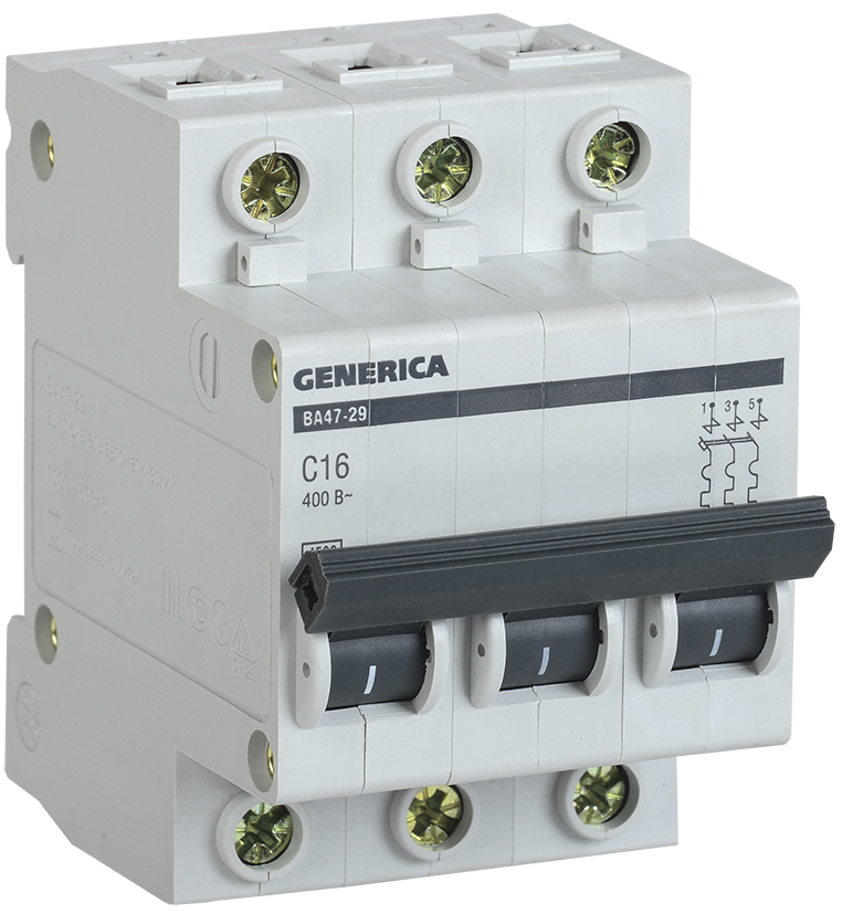 Автоматический выключатель ВА47-29 3P 16А 4,5кА характеристика С GENERICA