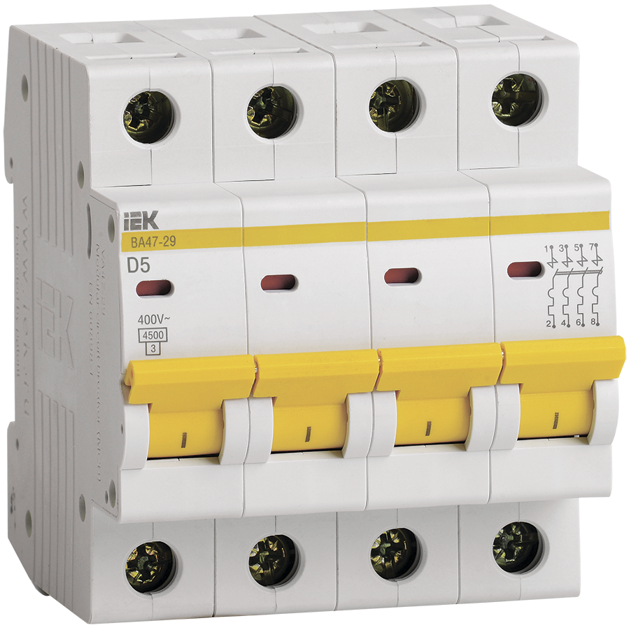 Автоматический выключатель ВА47-29 4Р 5А 4,5кА характеристика D IEK