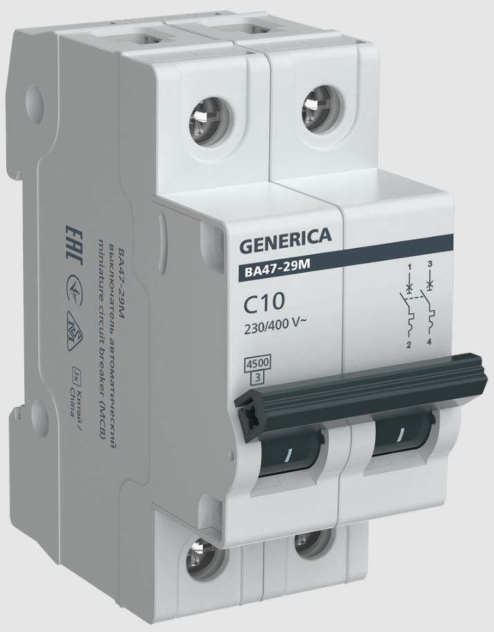 Автоматический выключатель ВА47-29М 2P 10А 4,5кА характеристика C GENERICA