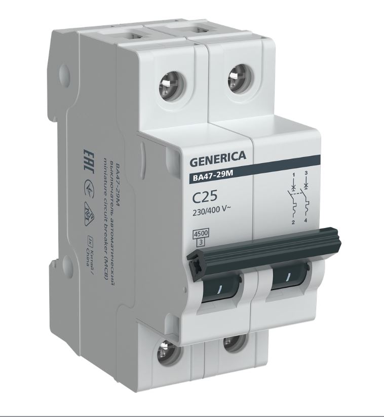 Автоматический выключатель ВА47-29М 2P 25А 4,5кА характеристика C GENERICA