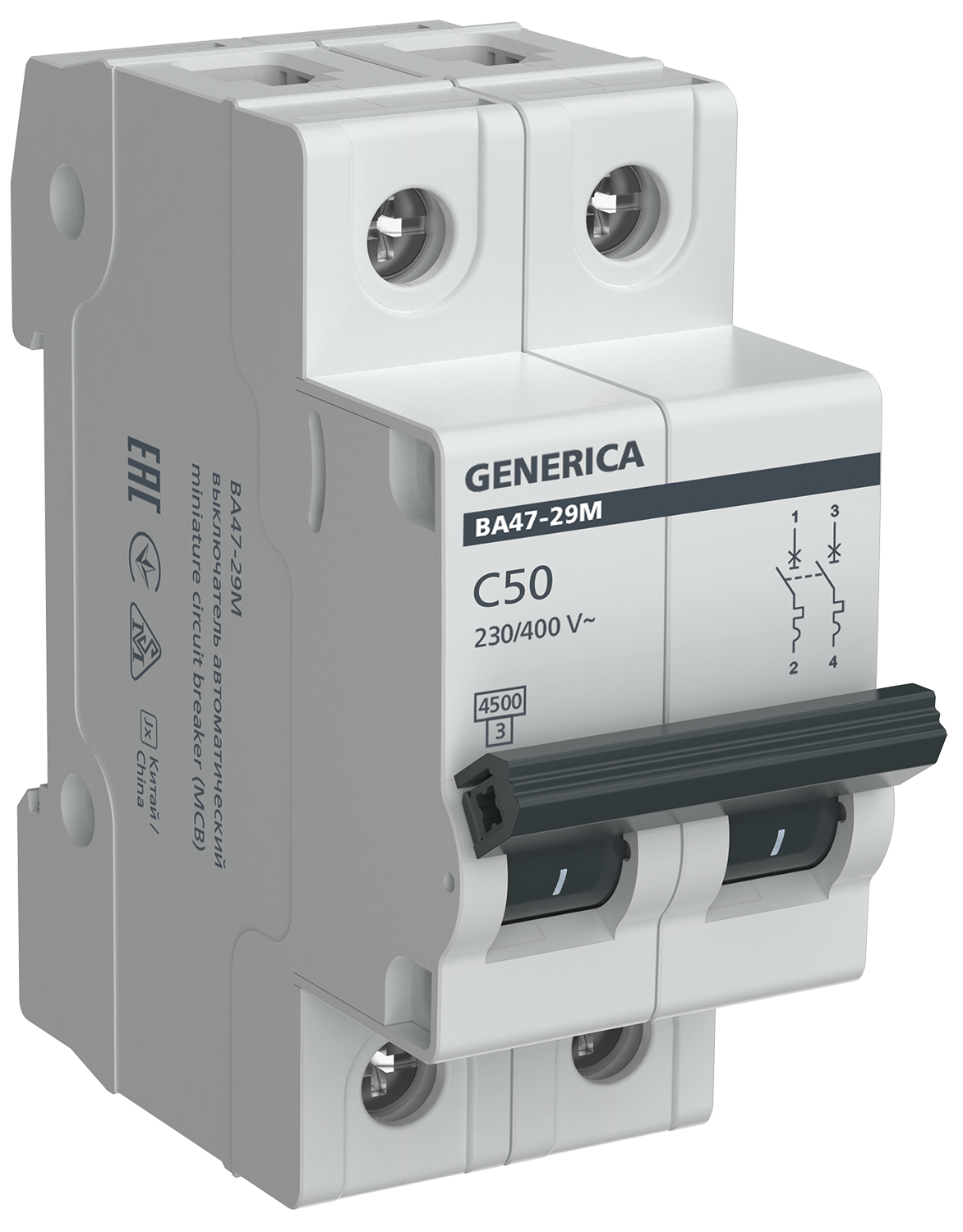 Автоматический выключатель ВА47-29М 2P 50А 4,5кА C GENERICA