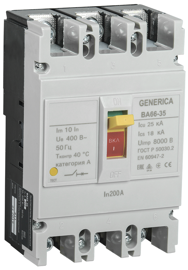 Автоматический выключатель ВА66-35 3Р 200А 25кА GENERICA