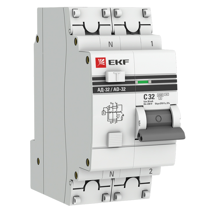Дифференциальный автомат АД-32 1P+N 32А/30мА характеристика C электронный тип AС 4,5кА EKF PROxima