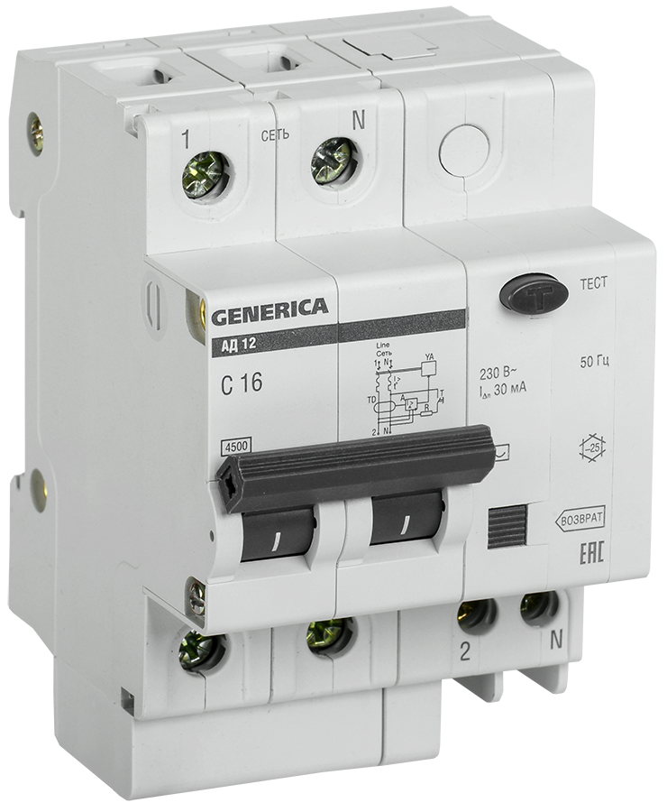 Дифференциальный автомат АД12 2Р 16А 30мА GENERICA IEK