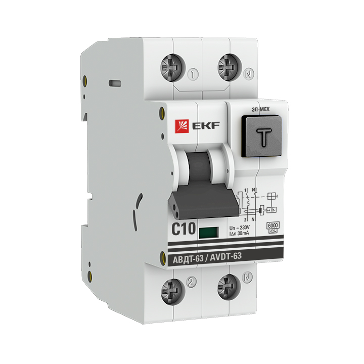 Дифференциальный автомат АВДТ-63 10А 30мА характеристика C эл-мех тип A 6кА EKF PROxima