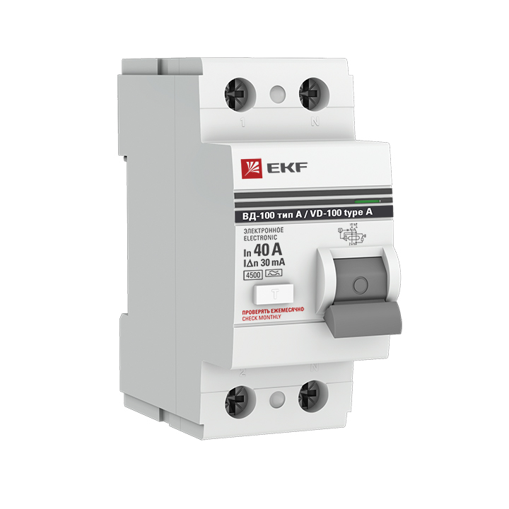 Устройство защитного отключения ВД-100 2P 40А 30мА (электр, тип А) EKF PROxima