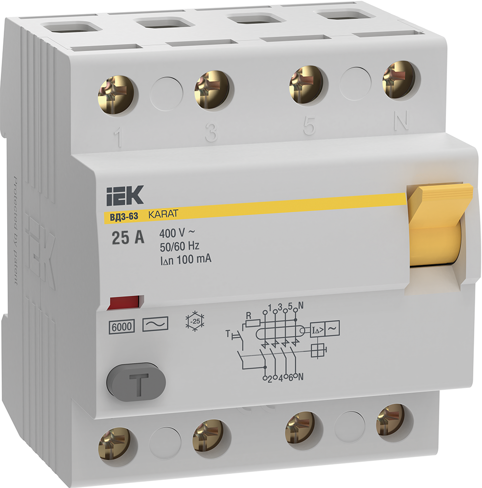 Устройство защитного отключения ВД3-63 4P 25А 100мА 6кА тип AC KARAT IEK