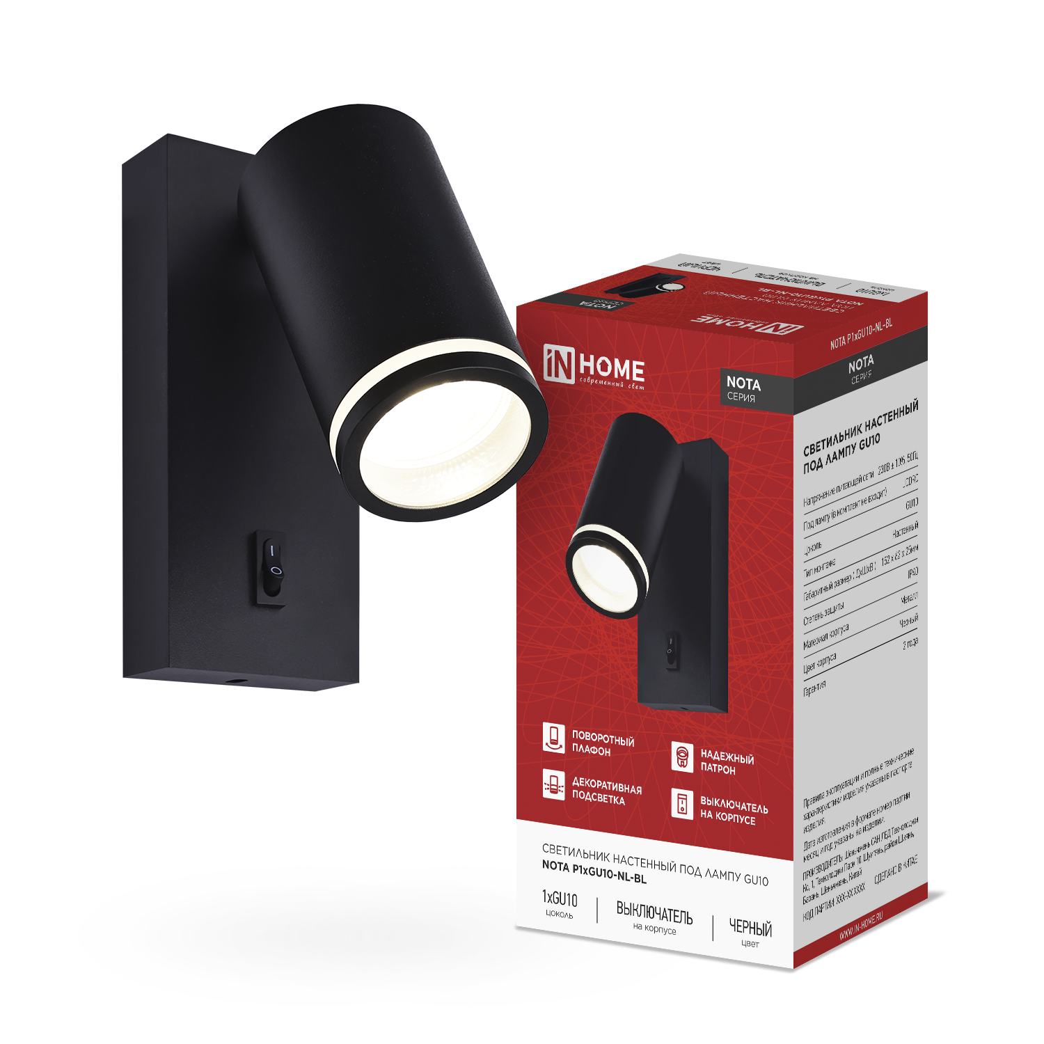Светильник настенный под лампу NOTA P1хGU10-NL-BL с выключателем черный IN HOME