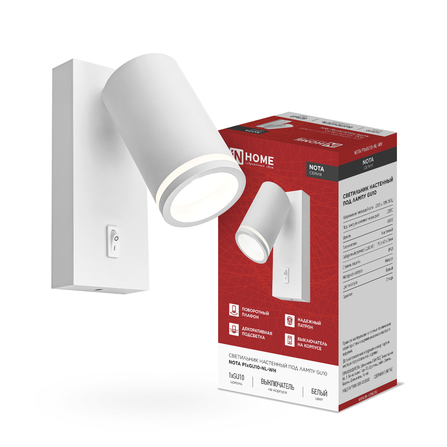 Светильник настенный под лампу NOTA P1хGU10-NL-WH с выключателем белый IN HOME