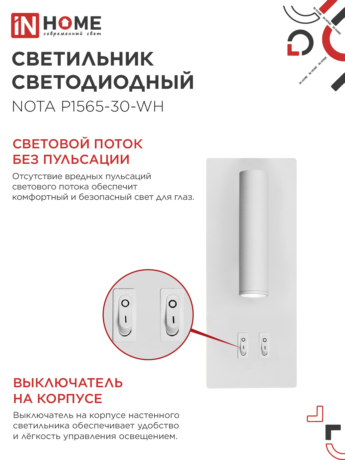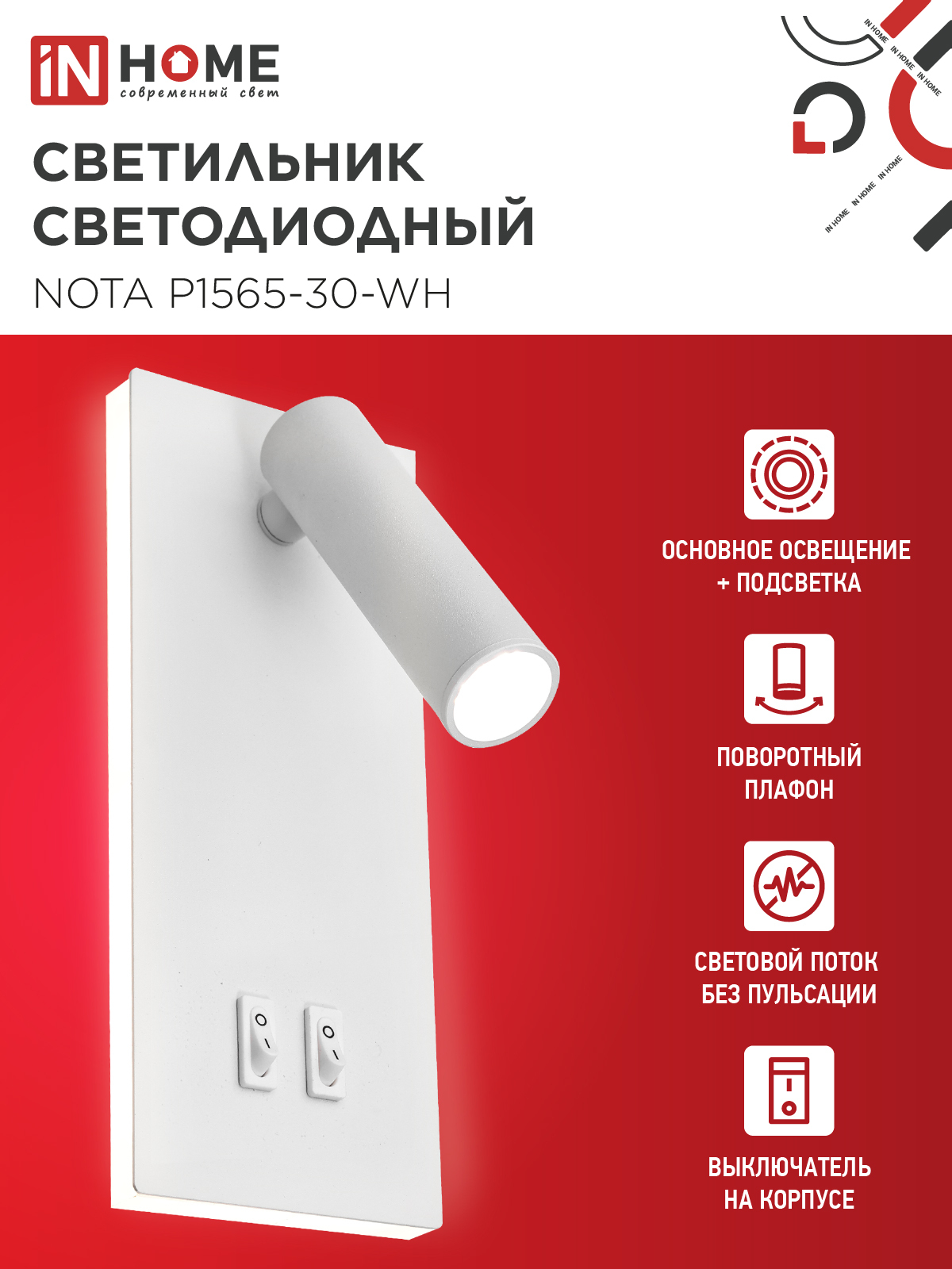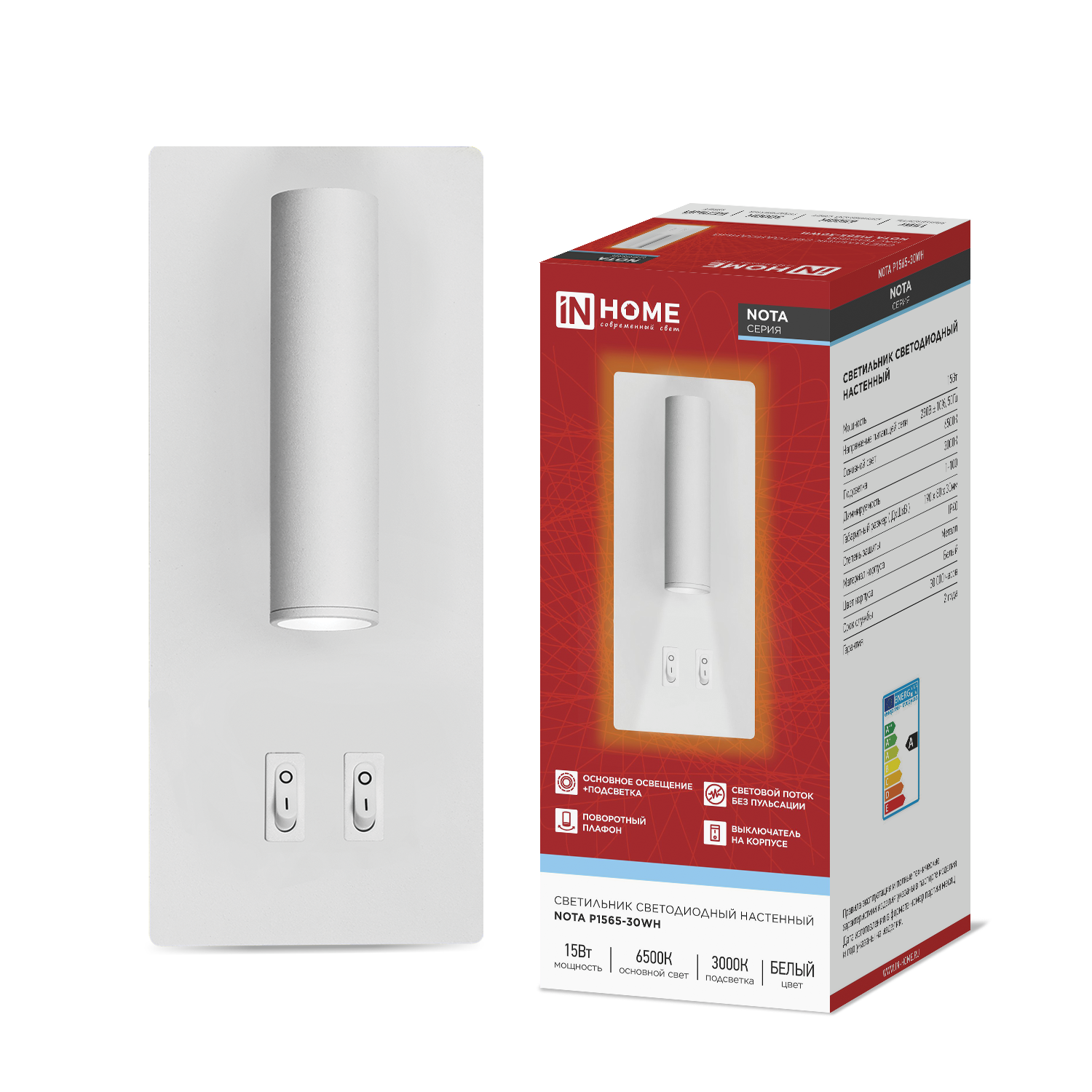 Светильник светодиодный NOTA P1565-30WH 15Вт 6500К с подсветкой 3000К белый IN HOME
