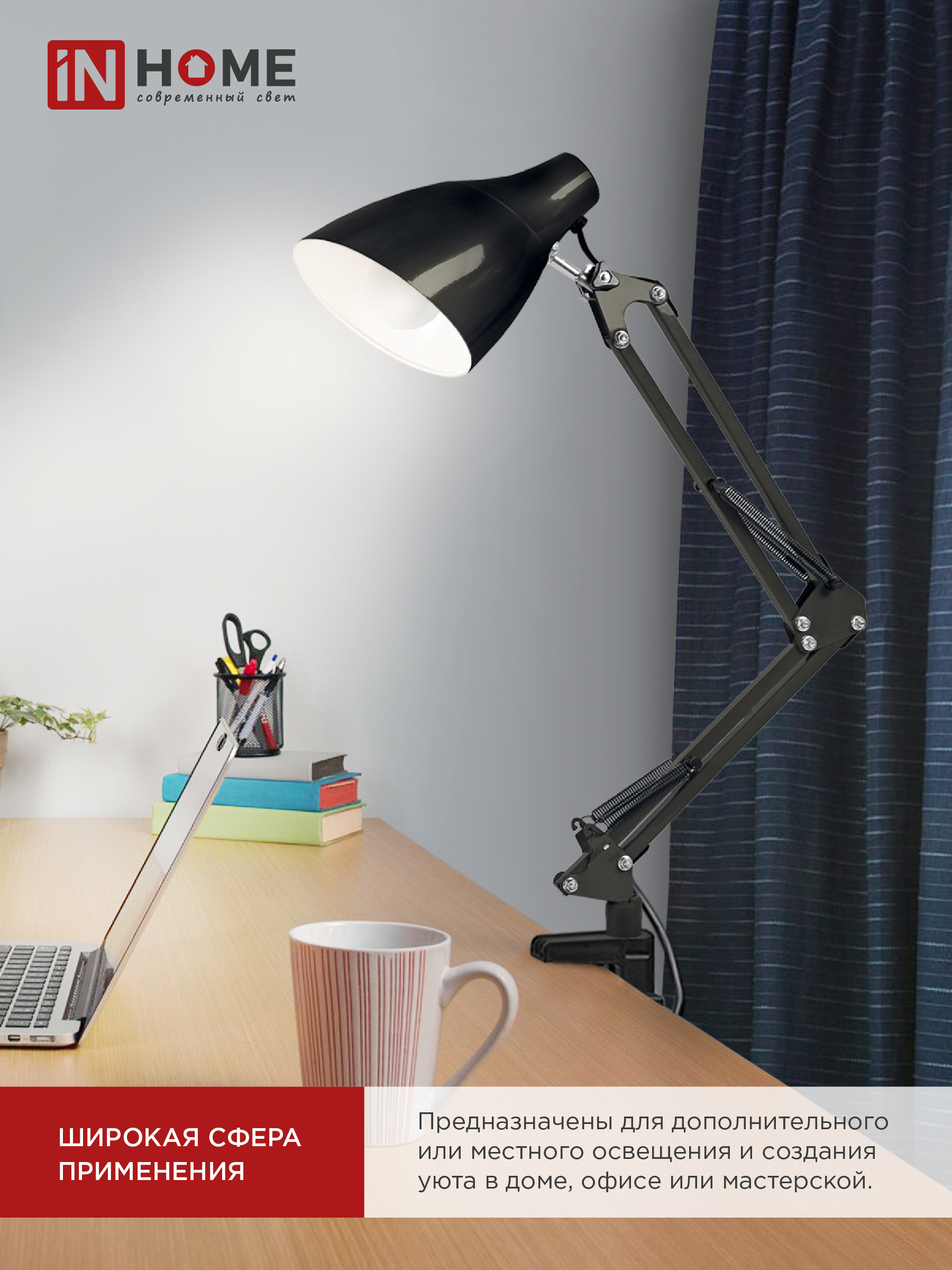 Светильник настольный под лампу на основании + струбцина СНО 17Ч-E27 230В ЧЕРНЫЙ IN HOME