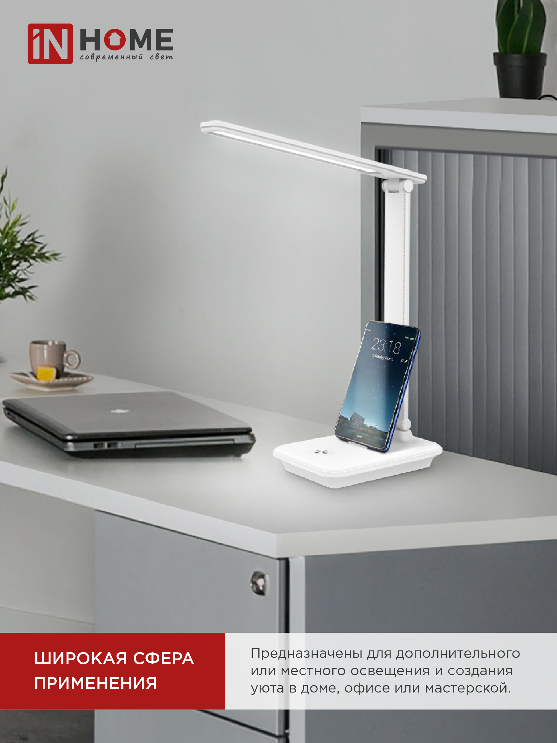 Светильник настольный светодиодный SIMPLE ССО-06Б 12Вт 600Лм сенсор, с подставкой под телефон, адаптер БЕЛЫЙ IN HOME
