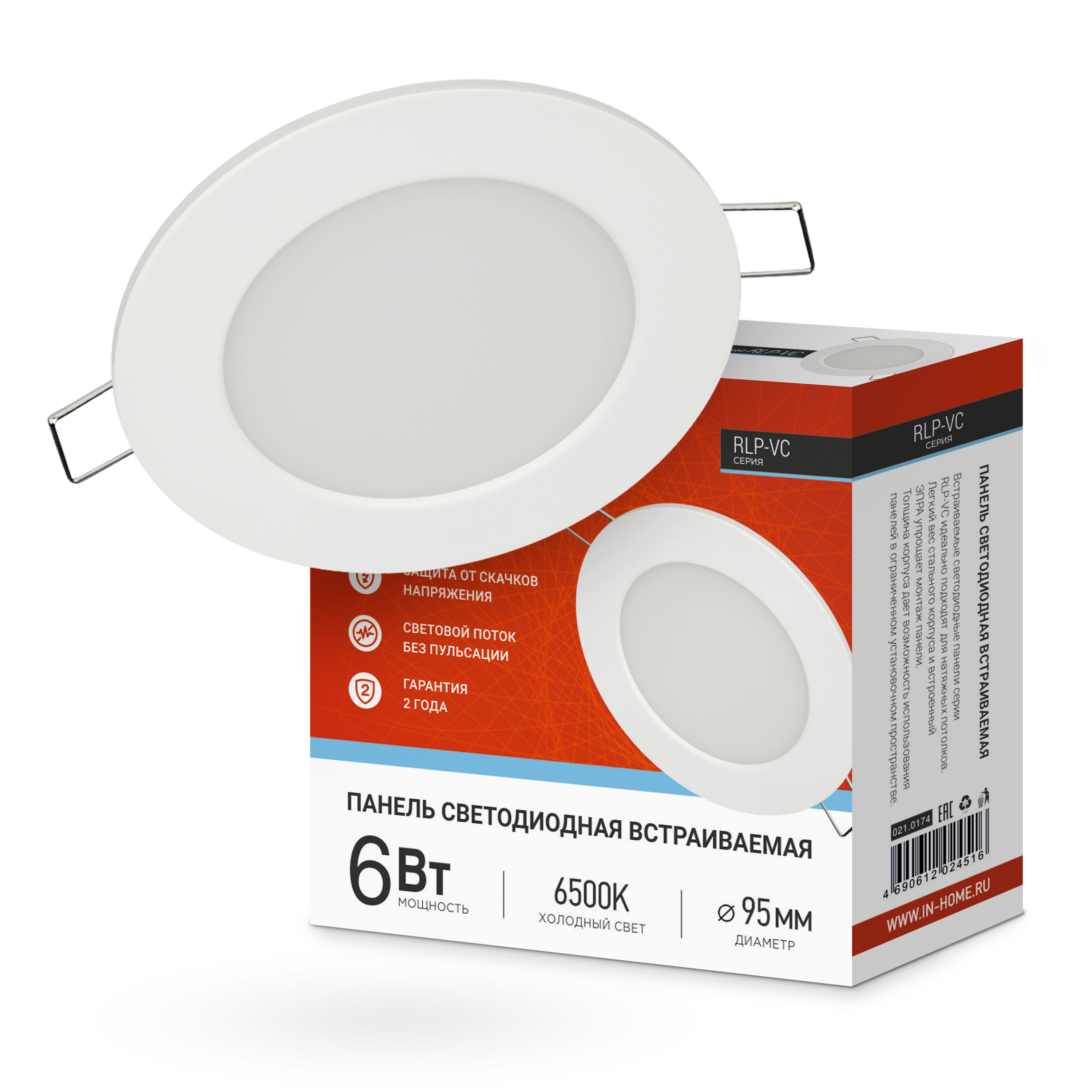 Панель светодиодная встраиваемая круглая RLP-VC 6Вт 230В 6500К 420Лм 95мм белая IP40 IN HOME