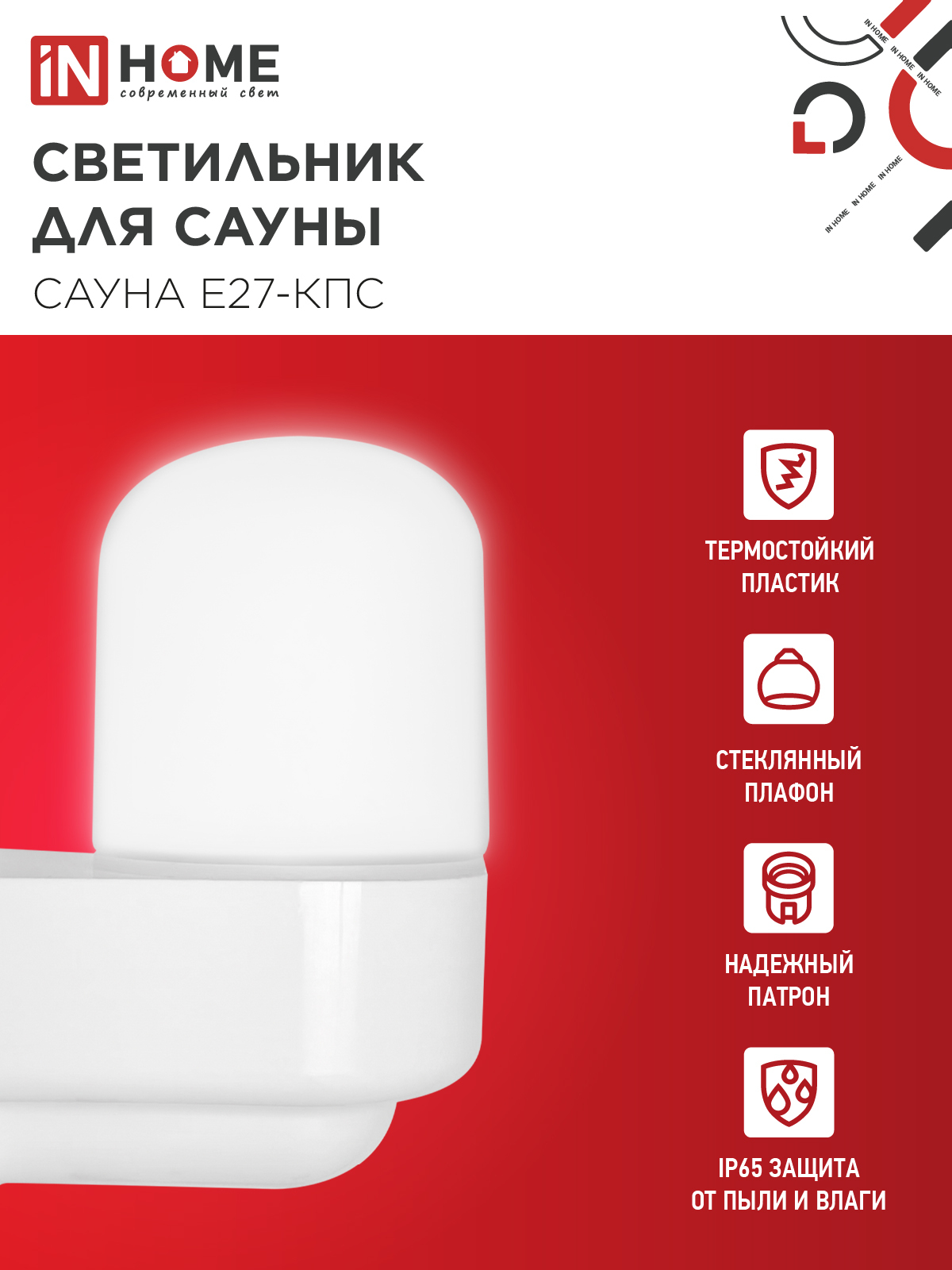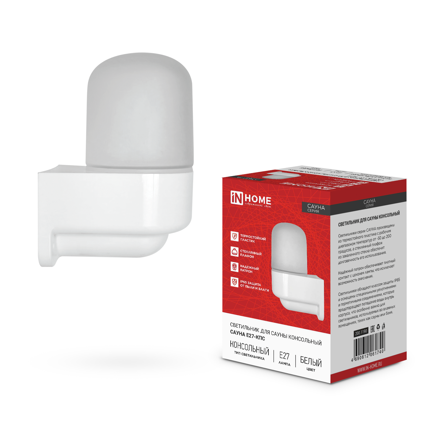 Светильник для сауны консольный САУНА E27-КПС пластик, стекло IP65 112x156мм белый IN HOME